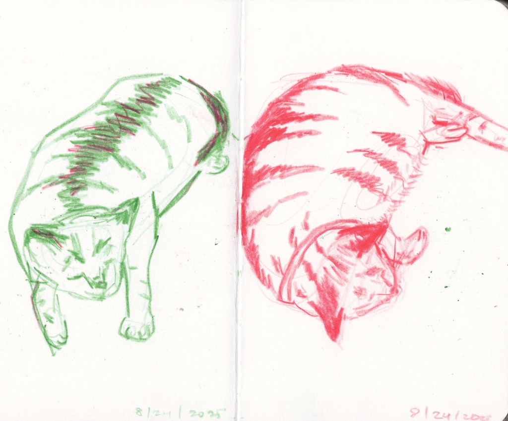 I’m late on things again, getting behind on all the chores and work and my commitment to post to this blog. This lateness is partly because my cat has been peeing outside of the litterbox every day for three weeks now and I spend half my time mopping it up. He’s suddenly decided to opt out of the system we’ve created for him, expressing his displeasure at the recent appearance of a new cat that showed up one night on our roof patio (and briefly perched on our bed, after it clawed its way through a hole in our window screen).